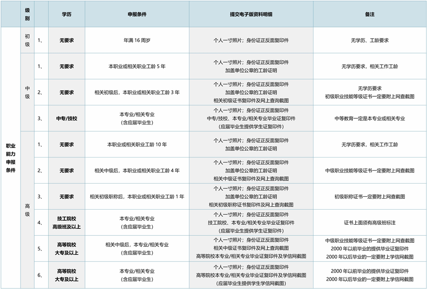 说明:各工种报名条件各不相同,具备已平台公布为准。